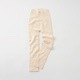 このニットパンツに使用しているガラ紡糸は太さが一定でない為、編み目が不揃いになります。特にニットパンツの股の部分は編み方が他の部分と違うために不揃いが目立つ場合があります。さらに手を加えると、本来の風合いを損ねることになります。敢えてこの状態のものを完成品としております。ご了承下さいませ。