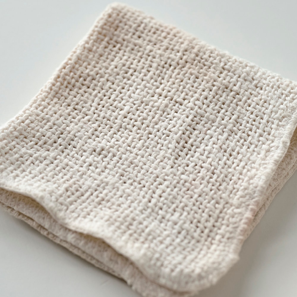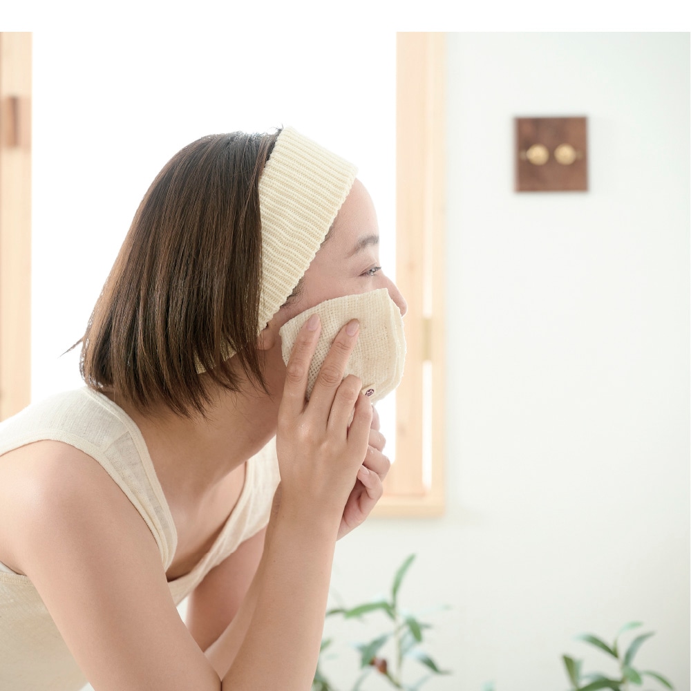 ガラ紡の和紡布は、やわらかな綿毛で汚れを絡め取り、皮脂を落としすぎません。必要なものだけを残す。そんな洗顔が、一日のはじまりを、静かに整えてくれます。