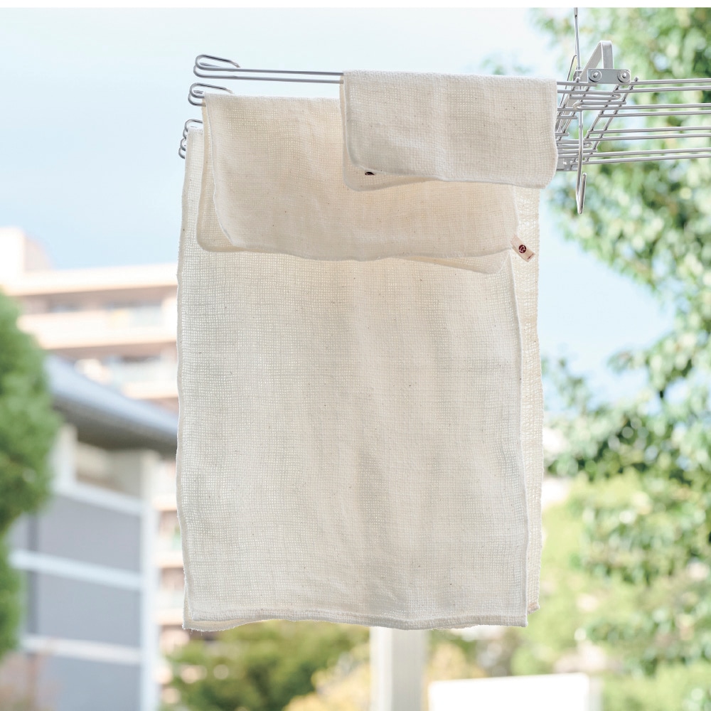 和紡布は、使うたびに少しずつ綿が細くなり、使い始めのふんわりとしたやわらかさは、ゆっくりと変わっていきます。洗顔クロスとしては、3ヶ月ほどを目安に新しいものへ替えてください。